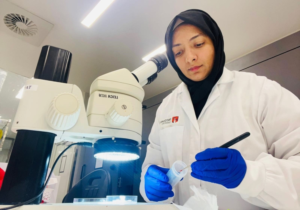 Rabia Ali, is investigating sustainable biological control solutions for fall armyworm in Australia under the supervision of Dr Bishwo Mainali at Macquarie University. Current work is focused on understanding how the two parasitoid species interact under different ecological conditions, for example, how they perform when released at varying host egg densities or in different release sequences. These studies are critical to determining the compatibility and efficiency of multiple biological control agents under real-world conditions.